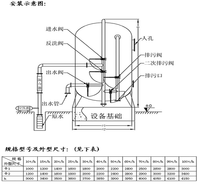 原水含鐵量≤20mg/L 原水含錳量≤10mg/L