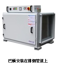 這種安裝方式的特點是:當(dāng)煙罩無法安裝時可以選擇箱體式,在排煙管道上安裝。同時這種安裝方式也適合于工業(yè)的VOC工業(yè)廢氣味道控制。